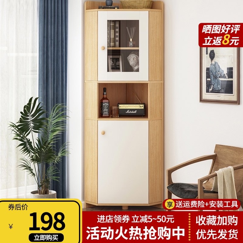 书架落地靠墙转角收纳网红书柜小型墙角卧室客厅创意艺术三角带门热门设计联盟服务商