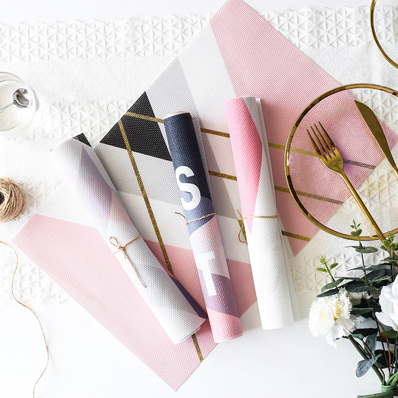 粉色系北欧艺术桌垫餐布隔热PVC餐垫防水防油隔热垫西餐垫子热门设计联盟服务商
