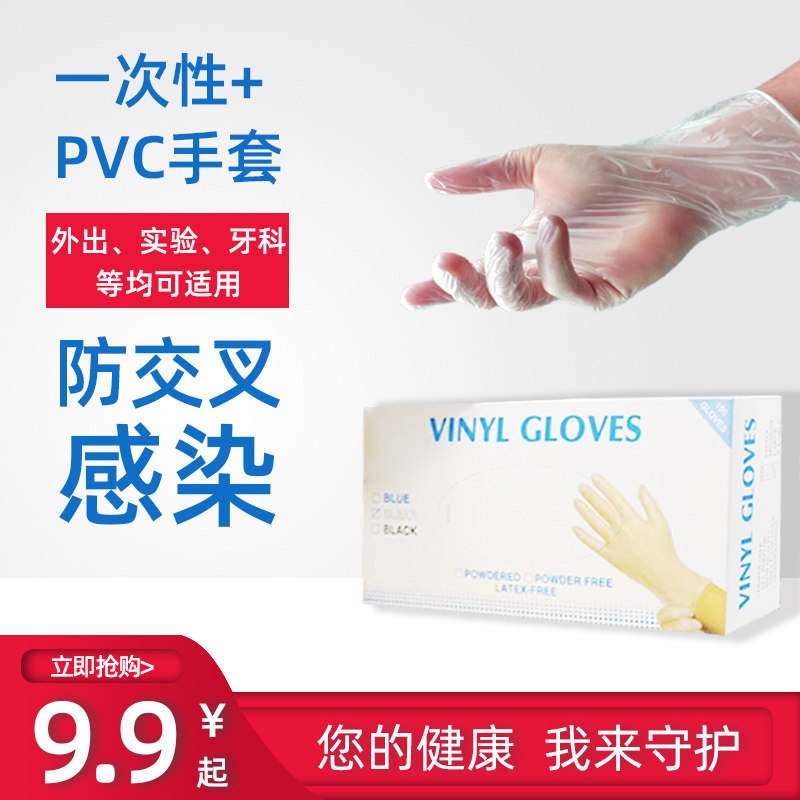 一次性手套pvc食品吃龙虾餐饮美容塑料透明检查加厚耐用家用手套热门设计联盟服务商