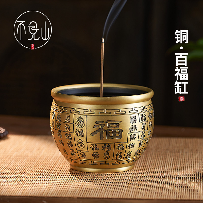 桌面摆件装饰办公室茶台创意百福铜缸摆件黄铜纯铜客厅家居工艺品热门设计联盟服务商