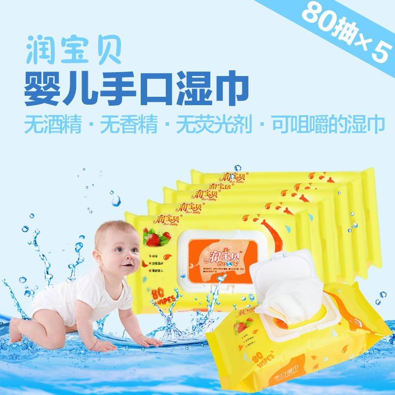 包邮其他婴儿手口屁专用湿巾便携抽取大包装带盖80抽5包无香热门设计联盟服务商