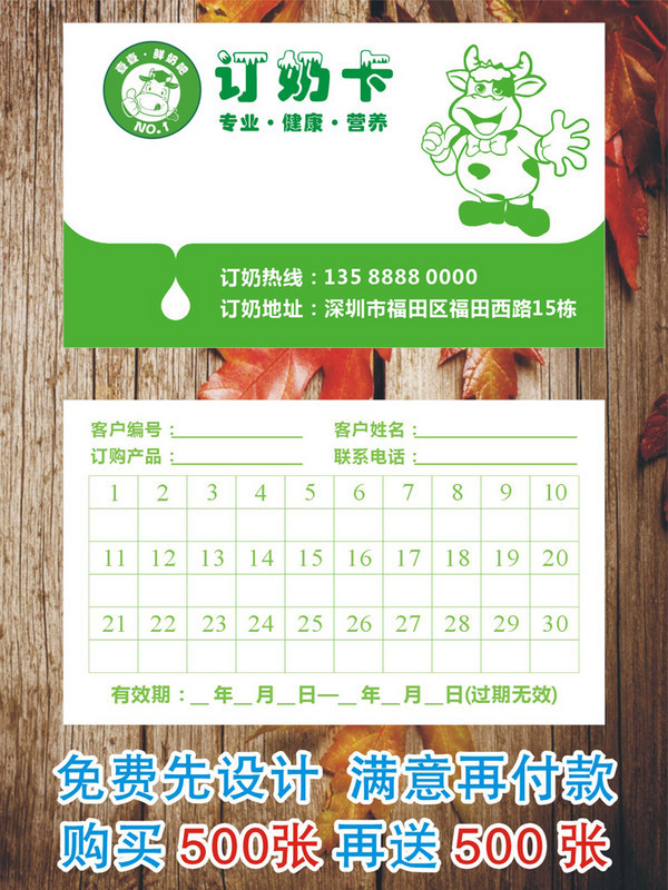 新鲜牛奶羊奶集章名片制作设计纸赠送印刷订奶卡次月卡积分做。热门设计联盟服务商