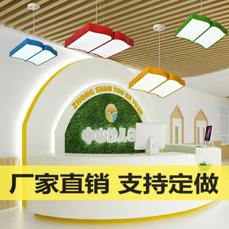 卡通彩色餐厅书房图书馆书吧书店幼儿园培训中心书本造型装饰吊灯热门设计联盟服务商