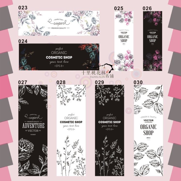 手绘花纹不干胶 设计定做黑白logo标签 花坊甜品贴纸制作 瓶罐贴热门设计联盟服务商
