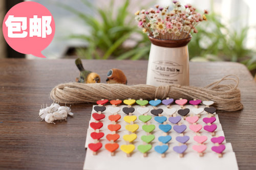 包邮麻绳照片墙小夹子 彩色爱心木头夹子 创意木质相片夹装饰热门设计联盟服务商