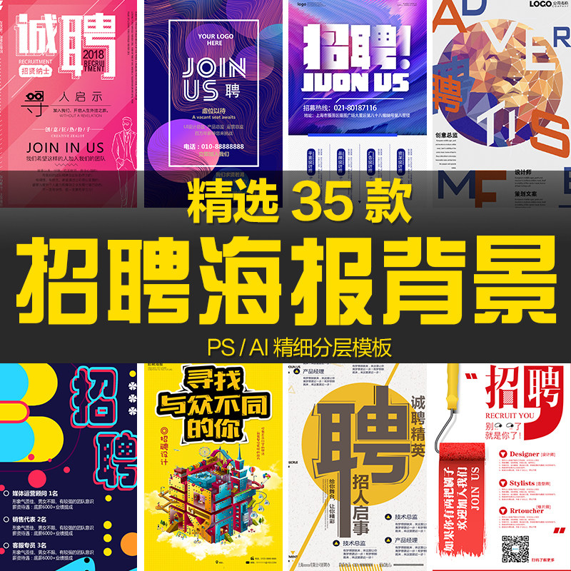 精选定制招聘海报 图文广告设计 平面海报模板内容图片修改热门设计联盟服务商